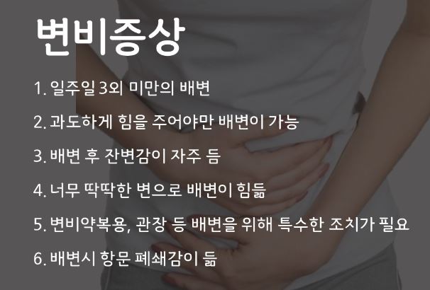 변비는 몸 속의 수분이 적을 때 생기는 현상입니다.