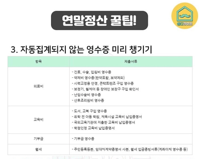 국세청에서 제공하지 않아 별도의 영수증을 챙겨야 하는 경우가 존재합니다!